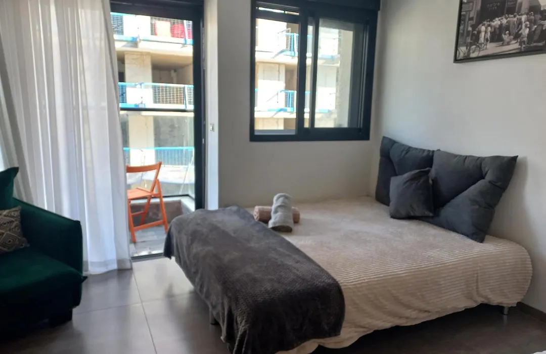 L'unité est équipée d'une cuisine complète. Vous serez assez proche de l'arrêt de bus le plus proche, Yafo Road/Herzl.